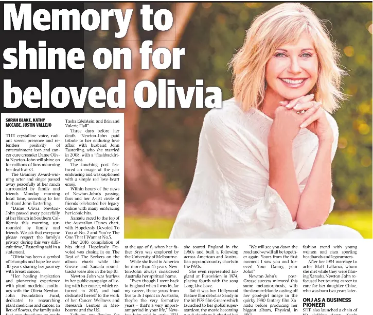 THE crystalline voice, radiant screen presence and relentless positivity of entertainment icon and cancer cure crusader Dame Olivia Newton-John will shine on for millions of fans mourning her death at 73.